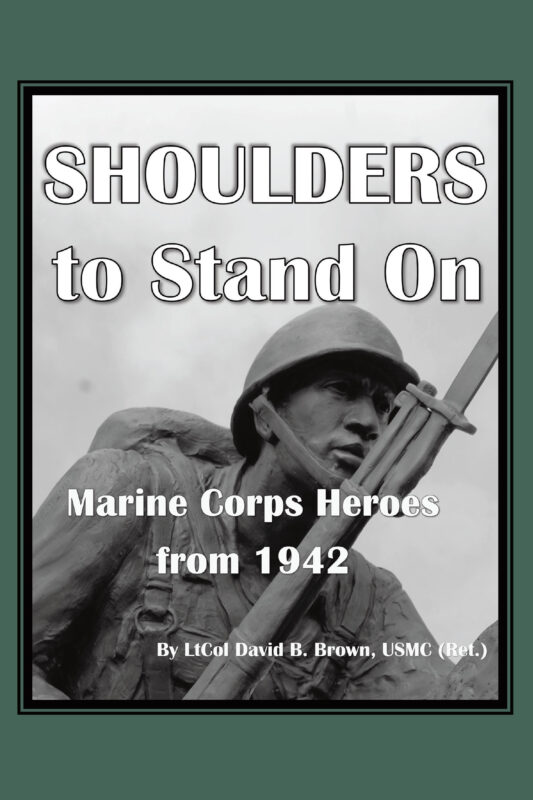 Shoulders to Stand On: Marine Corps Heroes from 1942 takes a historic look at racism in the Marine Corps initially under the leadership of the Corps' Commandant in WW II who stated in 1941, "It is my unwavering intention to tell the General Board up front that, if it ever was a question of having a Marine Corps of 5,000 Whites or 250,000 Negroes, I would rather have the Whites." Shoulders tells the compelling stories of 18 Marines who become part of the heritage of Black Americans' struggle for equality within the United States Marine Corps. The book focuses on male and female Black-American Marines from WW II to today, who successfully overcame racial challenges encountered in their youth and while on active duty in war and peace. These heroes rise to become general officers, US ambassadors, head of NASA, and cowriter of the US Fair Housing Act of 1968.